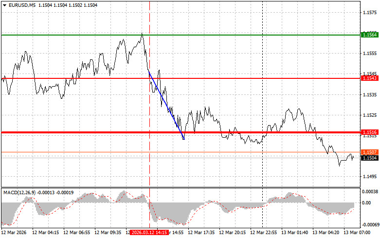 اختبار السعر لمستوى 1.1543 تزامن مع بداية تحرك مؤشر MACD هبوطاً من خط الصفر، وهو ما أكّد نقطة الدخول الصحيحة لصفقات بيع اليورو. ونتيجة لذلك، تراجع الزوج إلى مستوى الهدف عند 1.1516.